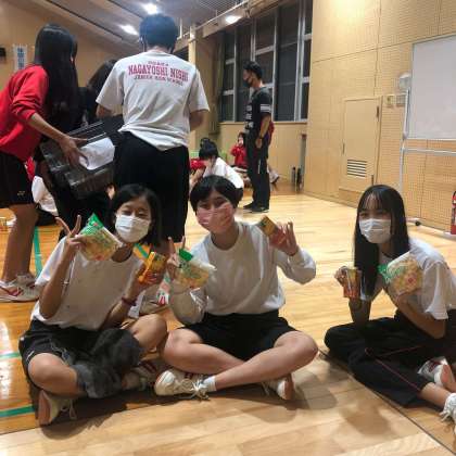 終わって、補食のメロンパンとオレンジジュースが出ました。