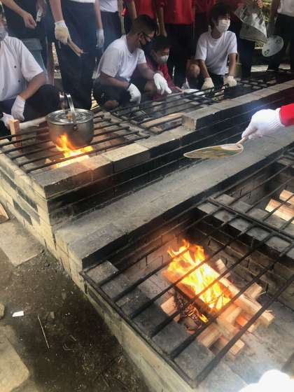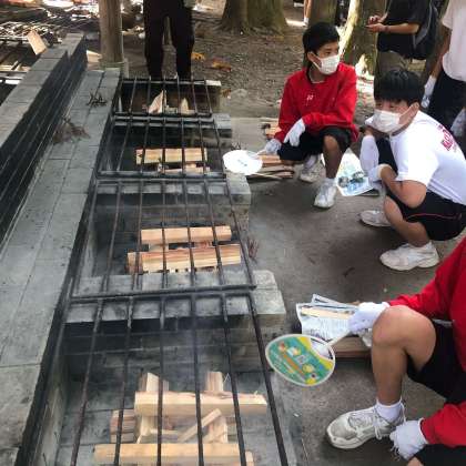 まずは、かまどの火おこしから。早く着き過ぎてもあかんのです。