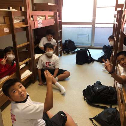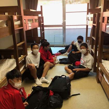 宿舎風景(感染対策のため、交代制の朝食待ちです)