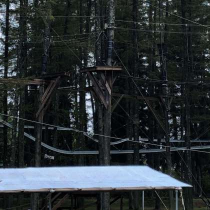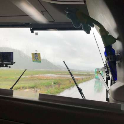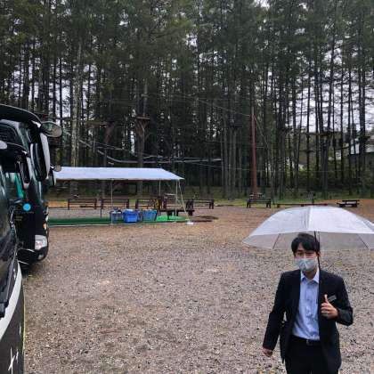 残念ながら、白馬村は雨です。ここまでは、いい天気だったんですが。ここで、風邪を引いては何にもならないので、代替の体育館に移動です。
