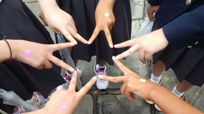 ゴールすると、先生にお土産購入許可を示すシールを、手の甲に貼ってもらいました。