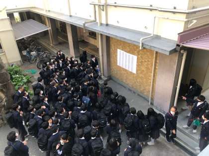 いよいよ、学校が始まりました。9時00分登校予定でしたが、早い時間からクラス発表を待ちきれない2・3年生が嬉しそうに発表を待っていました。