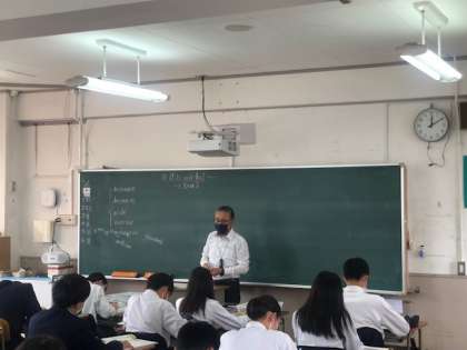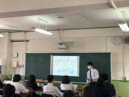 理科と英語の授業です。理科では原子記号の復習を小テストで行いながら答え合わせしていました。みんな笑顔なのが印象的でした。頑張ってください。
