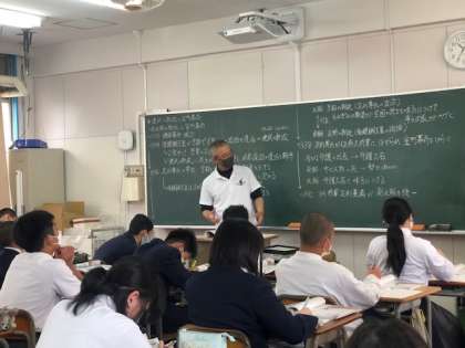 2年生は体育館で集団行動をしていました。一人ひとりが息を合わしながら整列をすることがピシっとできていました。社会も授業では黒板に書いた板書を丁寧にノートに書き写していました。板書もとても見やすいですね。