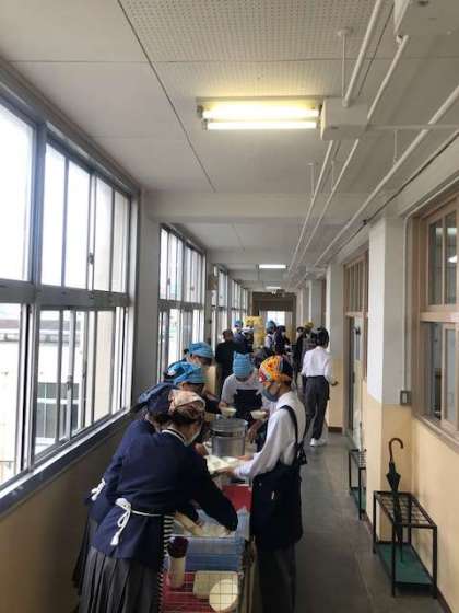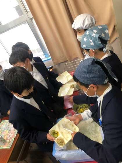 今日はマーボーでした。配膳係はみんなの分を考えて分けています。3年生は小おかずを2刀流でわける強者(つわもの)がいました。みんなで協力するとご飯もより美味しくいただけますね。