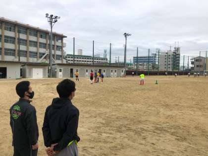 グラウンドでは大きな声でラグビーが練習には励んでいます。その横ではゴールを2台並べながらボール回しをしているサッカー部、赤いTシャツで活発に練習する陸上部がいました。今日、ホームページに上がりませんが他にも多くのクラブが曜日ごとに体育館やグラウンド、教室で活動しています。また次回紹介したいと思います。この土・日曜日には公式戦が始まる部活も多くあります。頑張ってください!