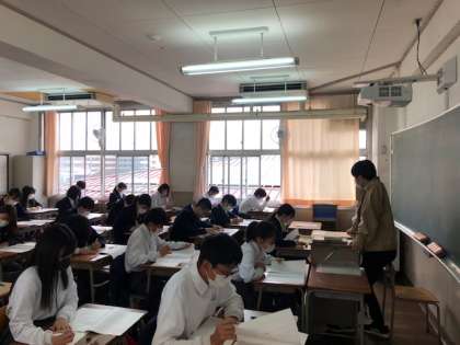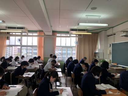 おはようございます。3年生は本日、全国学力学習状況調査に取り組んでいます。教科は国語、数学、理科となります。日々の学習の成果を存分に発揮してください。