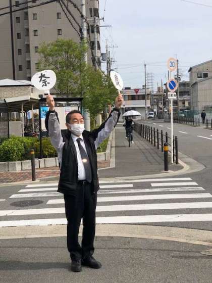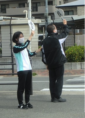 教頭先生はお手製の「曽爾・奈良」うちわでお見送りしました。