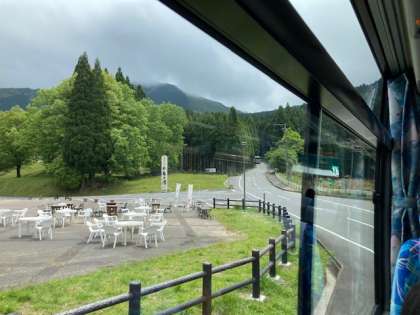 新緑深い山の景色になってきました。 まもなく自然の家到着です!