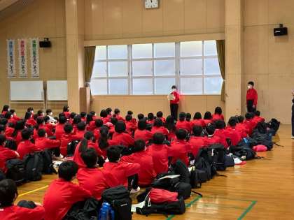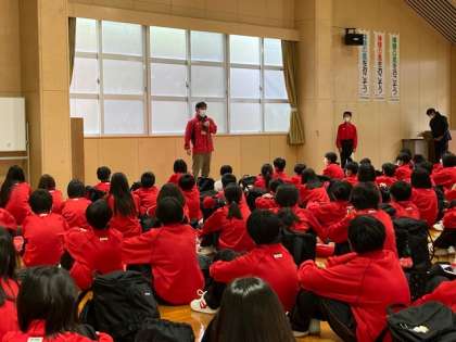 これから一泊二日お世話になる自然の家の職員の方へのご挨拶と、職員の方からの注意事項の説明などがありました。