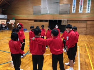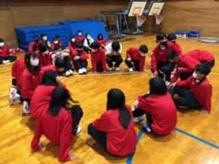 レクリエーション一つ目は「みんなでつくろう友達の輪」という、目を閉じたままお題の形を作るゲームです。