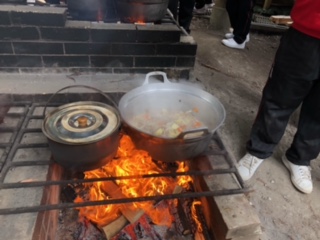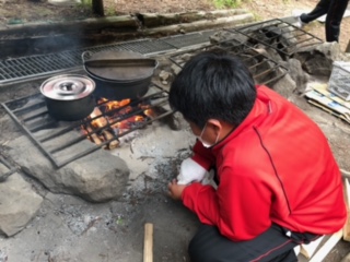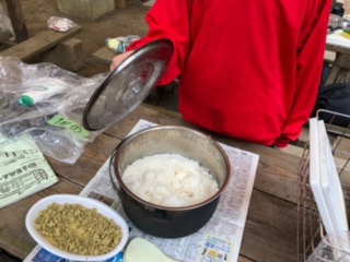 カレー鍋も火にかけていき、そろそろお米が炊けた班もでてきました。