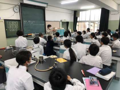 5限目、2年生は理科室で実験していました。今回は物質の性質、なぜホットケーキミックスは膨らむのか?スーパーことぶきで購入した材料で、気体の性質や物質の正体など過去の実験の確認を交えながら学習していました。とても楽しそうに取り組めていました。何より教えている先生が楽しそうでした。午後ももう少しです。頑張ってください!