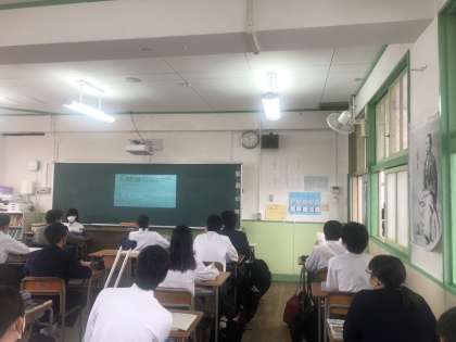 「世界恐慌と各国の影響」をテーマに調べて班内で発表を行いました。その中で、特にわかりやすかった「世界恐慌とアメリカ」についてクラス全体に発表してもらいました。発表者がパワーポイントを使って内容を作成します。グラフなどを用いてスライドもとてもわかりやすい素晴らしい発表でした。