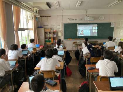 1年生は5、6限の時間を使ってタブレット端末を用いたパワーポイント作成の学習を行いました。