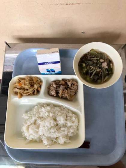 豚肉の甘辛焼き、もずくとオクラのとろり汁