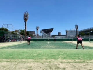 ソフトテニス部は土曜日、長居庭球場で大阪市春季総体がありました。