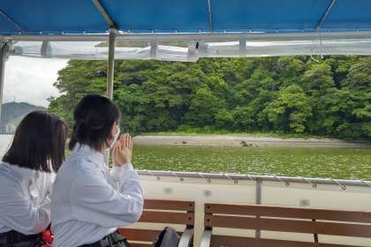 玉島神社に向かって、合格祈願