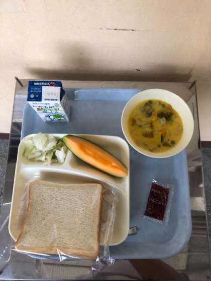 パン、牛乳 かぼちゃのクリームシチュー キャベツのゆずドレッシング クインシーメロン