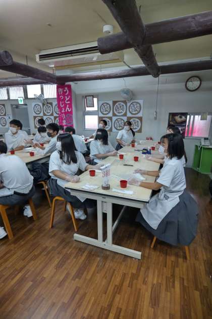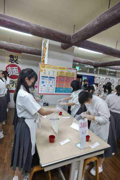 前半戦では、お店の人が作ってくれた生地を、うどんにしました。