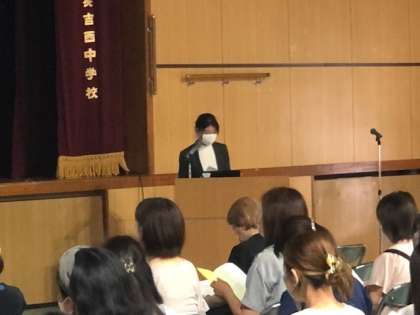 本校の進路指導主事である辻井より、来年度の進路に向けて年間を通してのスケジュールや奨学金、公立高校、私立高校などの説明がありました。