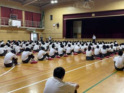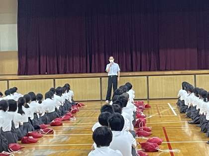 今日の学年集会は、本郷先生からしっかりと話を聞くようにしましょうとお話しがありました。