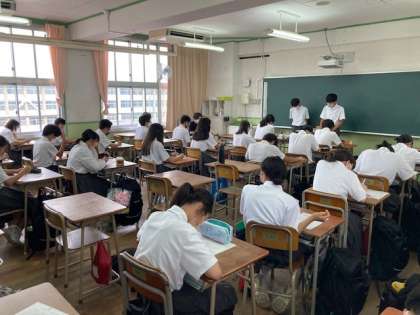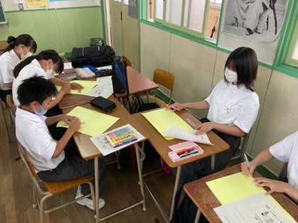 保健委員会では換気の啓発ポスター作りを、美化委員会では今月後半に行われる油引き、大掃除などの連絡などをしています。