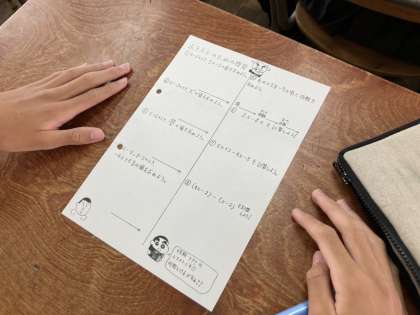 1年生の数学科では、これまで繰り返し学んできた、文字式への代入や項への分け方などの復習を行い、その後、小テストを行いました。