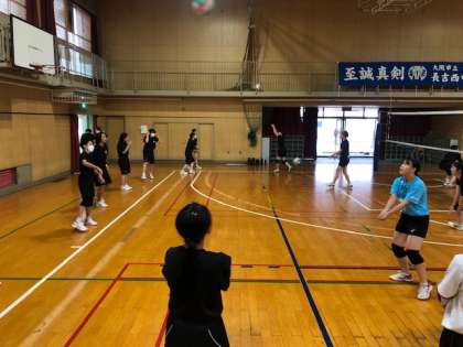 バレーボール部です。みんな笑顔で頑張っています。