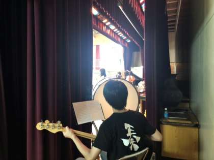 あるパートの裏では、低音を支えるためにK先生がベースを弾いています。