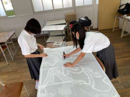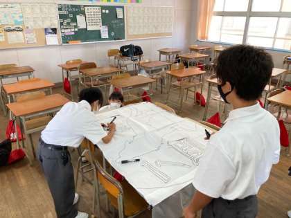 1年生は初めての学級旗づくりですが、どのクラスも上手に作業分担して作り始めていました。