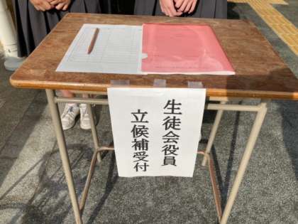 登校時、後期生徒会役員の立候補の受付を受け付けています。これからの西中学校をまとめていく意欲ある役員を募集しています。立候補をお待ちしています!