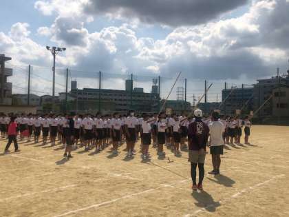 行進で5クラスの横をそろえるというのは難しいものですが、回数を重ねるごとに上手になってきました。のみ込みの早さは3学年で1番だと思います。1人1人が意識して取り組むともっと良くなると思います!残り1時間、頑張りましょう!