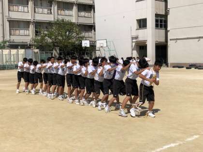 5時間目はみんなで「ムカデ競争」の練習です。各クラスの掛け声は独特です。本番を楽しみにしてください!