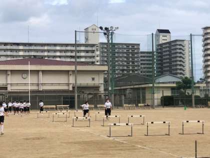 体育大会に向けた個別練習です。今日は天気もよくなり、涼しくて気持ちのよい天候ですね。ハードルやリレーの練習をしていました。