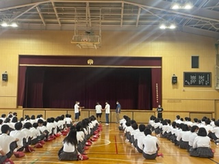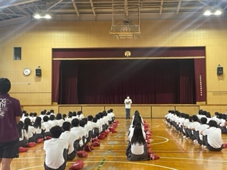 本日は深町先生からのお話でした。三年は全ての行事に「最後の」が付きます。みんなもよく頑張ってます、最後だから先生も全力でやって楽しんでほしいし、みんなで取り組んでほしい。ただ、みんなでやるときに、誰かのせいにするのはやめよう。あいつのせいでってするのは簡単、文句言うだけは簡単、どうしたらいいかを考えよう。そして、自分は全力を出すとかして頑張ってほしいというお話でした。