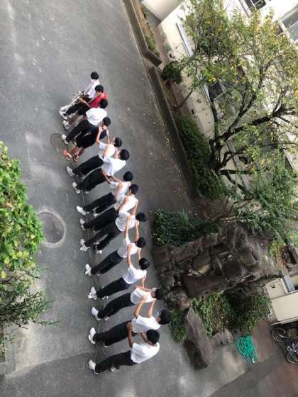 朝から中庭では3年生が明日の体育大会に向けてムカデ競争の練習をしています!
