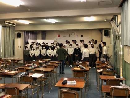 音楽の時間は合唱コンクールにむけて、入退場の練習をしていました。