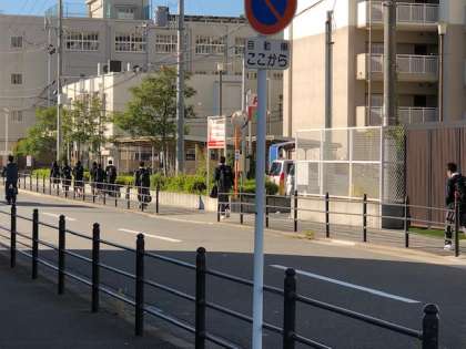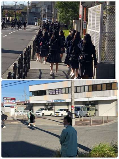 登校では朝から管理作業員も登校指導に入っています。