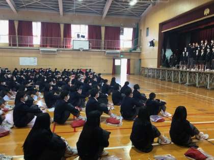 学年の仲間が精一杯に歌う合唱の中、1人1人がじっと聞いている姿勢が素晴らしいと思います。本気で取り組む仲間を応援できる態度、カッコいいです。3年生。