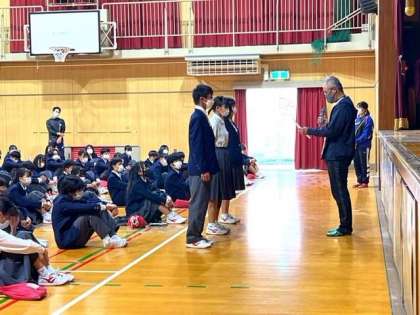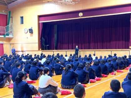 その後、芦谷先生から人間関係についてのお話がありました。誰しも好き嫌いはありますが人によって態度を変えたり関わりを断つのではなく、その人の個性を理解することが大切です。高校になると新たな出会いがあります。人との関わり方を考えながら生活してみましょう。