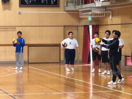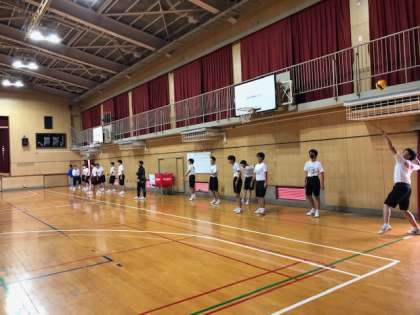 1・2組の体育はバレーボールです。サーブの打ち方の説明のあと、試合形式で練習に取り組みました。堂々と指示が出せています。頑張ってください。