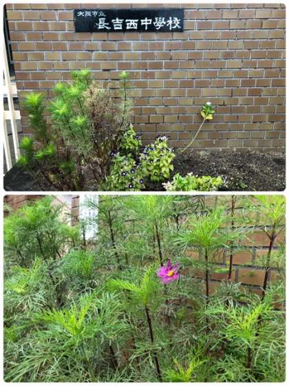 本日の天気は雨。気温19度です。ガーデニング部の秋桜(コスモス)が一輪だけ咲いていました。きれいですね。
