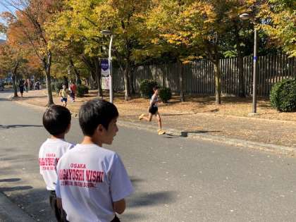長居公園にて行われた大阪府中学校駅伝にて、陸上部は序盤から少しずつ順位を上げていき、堂々の7位!