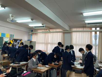 11/18(金)に控えた校外学習に向けて、各クラスの班長を集めて、クラスに伝える内容、注意すべきことなどを確認しました。