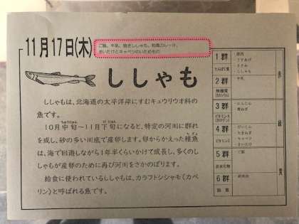 給食に使われているししゃもは、カラフトシシャモ(カペリン)と呼ばれる魚です。