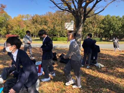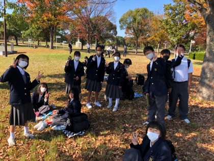 紅葉に囲まれた中でランチを過ごす班もあります。