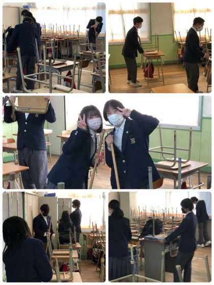 使った教室をきれいにして、気持ちよく月曜日から使用できるように、みんなできれいにしました。週明けのテストもがんばりましょう!