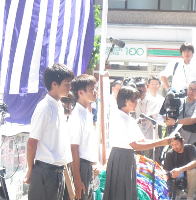 僕たちは戦争を経験していません。戦争の実体験を聞くことが出来る最後の世代だといわれる僕たちが担うべき役割は、とても大きいと感じています。聞いたお話や学んだことを、次の世代にも伝えなければいけません。だからこそ、今日のこの追悼式に参加できたことも、とても貴重な経験だと思っています。今日のことも、学校に戻り、みんなにしっかりと伝えます。そして僕たちは、二度とこのような悲劇を、繰り返さない未来をつくっていきます。