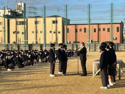 校長先生より、3年生はいよいよ進路の時期になってきました。新型コロナウイルス感染症の数が減っていない点、インフルエンザの増加についての懸念もあり、体調管理をしっかりして学校生活を送ってください。予防の観点より引き続きマスク・手洗いなどもしっかり行ってくださいとお話がありました。空気が乾燥しています。日々の対策を万全にしていきましょう!